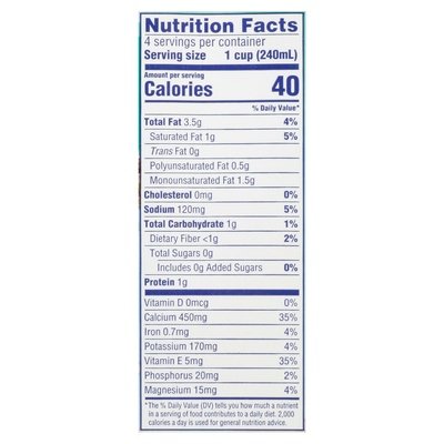 Almondmilk coconutmilk blend. No artificial flavors or colors. 40 calories per serving. Dairy free. Gluten free. Dairy & lactose-free. Soy-free. Egg-free. 50% more calcium than dairy milk (1 cup of regular dairy milk contains 300mg calcium vs 1 cup of almond breeze contains 450mg calcium). No added sugar. Almond Breeze: 35% DV (450mg); Dairy Milk: 25% DV (300mg) (1 cup of regular dairy milk contains 300mg calcium vs 1 cup of Almond Breeze contains 450mg calcium). Excellent source of vitamin E. Cholesterol free (almond milk, a cholesterol-free food). Non GMO Project verified. nongmoproject.org. Almonds. The best almonds make the best almondmilk. Every cup of Almond Breeze is carefully crafted with the best almonds. For over 100 years, our co-op of California family owned orchards has been dedicated to growing the Blue Diamond almonds that give Almond Breeze the delicious, creamy taste you'll love. - Ken and Jason Chandler. Growers for 3 generations. Casein free. Carrageenan-free. Taste Guarantee: If you are not satisfied with the taste, we guarantee your money back. For specific details, visit almondbreeze.com. almondbreeze.com. how2recycle.info. Scan me for an exciting experience! Facebook: Find us on Facebook. SmartLabel: Scan barcode with SmartLabel app for more information. To learn more, please visit us at www.bluediamond.com/faqs or scan product UPC code for SmartLabel page. Questions or comments? Contact Blue Diamond customer support at 1 (800) 987-2329 or support(at)bdgrowers.com. Please include code number found on pack with all inquiries. almondbreeze.com. Tetra Pak: Protect what's good. Tetra Pak Tatra Brik Aseptic. How we make a difference: California almond growers have reduced their water usage by 33% for every 1 lb of almonds grown. Almondmilk produces 78% less carbon emissions than dairy milk. We partner with Project Apis m. to help honeybees thrive before, during and after the almond bloom. For more information, please visit us at www.bluediamond.com/sustainability. Rainforest Alliance Certified. FSC: Mix board from responsible sources. www.fsc.org.