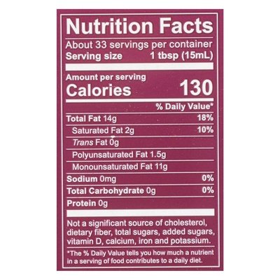 Fresh & fruity Vegan. Non-GMO Project verified. nongmoproject.org. Reserve. 100% California. Cold pressed. Specially selected by our head miller, this 100% California-grown, single varietal Extra Virgin Olive Oil is a consistent award winner. The flavor of the Arbequina olive varietal features high fruitiness balanced with herbal notes that pair well with fresh, seasonal produce. Natural fruit sediment may occur. Certified Extra Virgin - Applied Sensory Panel. Olive Oil Commission of California Member. californiaoliveranch.com. Whole 30 Approved. Product of California. California CA Grown.