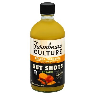Golden beets and black pepper. 10+ shots per bottle. 2-5 shots per day. USDA Organic. Certified Organic by CCOF. Organic is non-GMO & more. No added sugar. Gluten free. Vegan. Hardworking probiotic active cultures. Probiotic Drink Reimagined: Tantalize your taste buds and feed your body, mind and spirit with our probiotic and wildly flavorful gut shots. Sip it, shoot it or boost your favorite recipes, but you'll be hooked once your body discovers this savory, pleasingly tart drink. At Farmhouse Culture, we believe in the power of simple, hardworking foods and we want to share our passion and our knowledge to transform lives for the better. We are Farmhouse Culture and we're here to ferment a food revolution! Our wild fermentation process uses probiotic lactic acid bacteria existing both in and on the vegetables we ferment. As a result, the probiotic quantity and type present in this bottle varies from batch to batch. FarmhouseCulture.com. Please recycle.