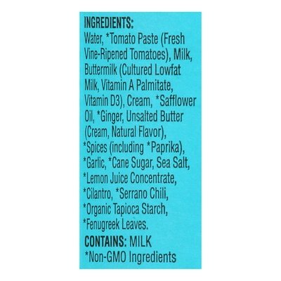 Toasty spices & tangy tomato. Gluten free. Vegetarian. Tikka Masala is a velvety, tomato-rich Indian curry, born in Britain and beloved the world over. Toasty garam masala spices infuse it with a deep and delightful warmth. We take our time preparing this sauce to give you the fullest, most exceptional flavors. I bring a fresh perspective to my delicious heritage, inviting you to experience the beautiful complexity of Indian food and share it with the people you love. - Mana Kaimal, award-winning cookbook author. Separation is natural. mayakaimal.com. Instagram. Facebook. Twitter. Visit mayakaimal.com for more delicious products. Please recycle.