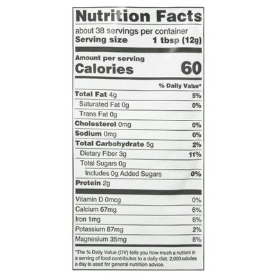 Per 12 g Serving: 60 calories; Plant omegas; fiber (11% DV). Omega-3's (Contains 2254 mg of Omega-3 Fatty Acids per serving). 8x more Omega-3's than salmon (100 g of Chia Seeds contain 25.5 g of Polyunsaturated fats vs 100 g of Atlantic Salmon contains 3.25 g of Polyunsaturated Fats [USDA National Nutrient Database for Standard Reference Release 28]). USDA Organic. Certified organic by Control Union Certifications CU 82080. Gluten free. Vegan. Good source of fiber. Non GMO Project verified. nongmoproject.org. Plant-based superfood. Superfood: Premium plant-based nutrient-dense essentials. Versatile super seed. Superfood Promise: Using the most health-boosting plants in the world, we promise our superfoods are organic nutrient-dense & handled with care at every step. Ancient treasure. Nutrient dense. Go after each day with passion and drive. Super-simple, super-nutritious superfoods give you the energy you need to live each day to the fullest. In fact, Navitas (Nuh-vee-tus) is Latin for energy. We search the globe for the highest-quality organic superfoods to keep you energized. What's more, we work hard to power the positive in all we do as a company, celebrating healthy foods and supporting sustainable causes. Navitas. Live life positive. Chia: Mayan word for strength. The ultimate superfood add to everything. Stir. Blend. Baked. Live life positive. Positive mind. Positive vibes. Positive life. navitasorganics.com. Certified B Corporation. BPA free. Product of Mexico/Argentina/Paraguay.