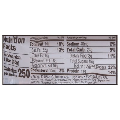 11 g protein. See nutrition panel for fat content. Protein 14% DV. Gluten free. Low glycemic index. Low Glycemic: Low Glycemic Index (GI) foods digest slowly to keep you fuller, longer. Non-GMO Project verified. nongmoproject.org. 20+ Super foods. Dive into layers. Introducing Perfect Bar Layers-a line of crispy nut butter bars crafted to delight your taste buds and excite your senses! We blended peanut and cashew butters together with quinoa and honey, then topped with a dark chocolate spread and a sprinkle of toasted oats. With 11 g whole food protein, 20+ superfoods and a delicious taste, you'll dive headfirst into layers of crispy peanut butter and chocolate. Take on the go for 1 week.