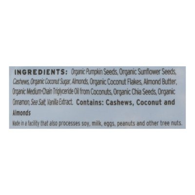 Made with organic chia, coconut flakes + MCT oil. Delicious taste and nutrient-dense ingredients. Per 30 g Serving: 5 g protein; 4 g added sugar NSF: Certified gluten-free. Certified Paleo. This product is Keto certified Ketocertified.com. Grain-free. Non GMO Project verified. nongmoproject.org. Created to help you thrive on your wellness journey. - Elizabeth. Eat purely. Live purely. We believe that food can heal. When you eat better, you feel better. That's why we use superfoods with vibrant colors and rich textures to create foods you will obsess over. But good health is about more than what you eat. It is a holistic approach centered around my pillars of living purely. You are what you eat: Focus on plant-based nutrient-rich foods. Limit inflammatory foods + Follow the 80/20 rule: 80% of the time be your healthiest self. 20% of the time, indulge - guilt-free + Good health is more than diet: Exercise, stress management and healthy relationships are equally important + Live your best life: Live with intention. Innovate, evolve, grow and be grateful. + MCT oil or medium-chain triglyceride oil is a type of fatty acid derived from coconut oil. It can be more easily digested and converted into energy compared to other fats, helping to keep you full longer. Created in 2009 by Elizabeth Stein, certified holistic nutrition counselor. Our purely guarantee. Don’t love it? Send us an email at support(at)purelizabeth.com. www.purelyelizabeth.com. Ketocertified.com. Instagram. Purely_Elizabeth. Facebook, Twitter. /purelyelizabeth. Certified B Corporation.