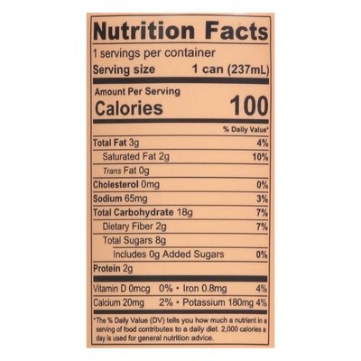 Your daily latte with an adaptogen boost. USDA Organic. Certified Organic by CCOF. Dairy-free: Crafted with pure oat milk. No refined sugar: Natural sweetness from dates. No dairy. 80 mg caffeine = 1 cup. Non-GMO. Single shot coffee. Your daily latte with benefits. A delicious blend of organic coffee, oat milk, dates, and adaptogens. +Adaptogens: With ashwagandha and maca. Clean Caffeine: From organic, fair trade coffee. (at)popandbottle. (hashtag)lovemealatte. Women Founded. Remove label to improve recycling. Fair Trade.