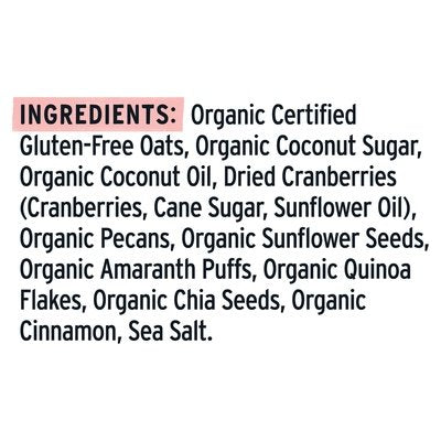 Salty-sweet crunchy clusters made with organic oats, chia & coconut sugar. No artificial or natural flavors. Vegan. NSF: Certified gluten free. Certified Organic by: QAI. Non-GMO Project verified. nongmoproject.org. Recipe no. 2. New look. Same taste. Created to help you thrive. - Elizabeth. The Purely Story: As a certified holistic nutrition counselor, I believe that nutritious food has a powerful effect on the body. When you eat better, you feel better. I started Purely Elizabeth to make food full of nourishing ingredients and delicious, culinary taste to help you thrive on your wellness journey. Enjoy! -Elizabeth, Founder & CEO. Full of the good stuff. We select each ingredient for its taste, texture and nutrition to create products you will obsess over! Our ancient grain granola blend is made with organic oats, chia and sustainably sourced coconut sugar. Our purely guarantee. Don't love it? Send us an email at support(at)purelyelizabeth.com. purelyelizabeth.com. Scan for recipes + exclusive rewards! Facebook. Pinterest. Instagram. Certified B Corporation. Woman Owned.