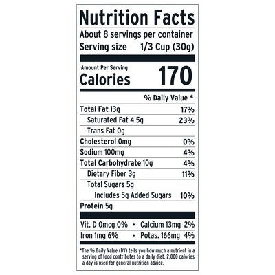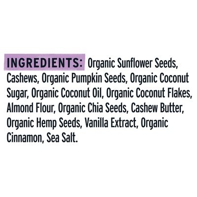 Crunchy clusters with coconut flakes, cashews & coconut sugar. No artificial or natural flavors. Gluten free. NSF: Certified Gluten free. Certified Organic by: QAI. Vegan. Paleo. Grain free. Keto. Non-GMO Project verified. nongmoproject.org. Non-GMO. New look. Same taste. Created to help you thrive. Elizabeth. Recipe no. 07. The Purely Story: As a certified holistic nutrition counselor, I believe that nutritious food has a powerful effect on the body. When you eat better, you feel better. I started Purely Elizabeth to make food full of nourishing ingredients and delicious, culinary taste to help you thrive on your wellness journey. Enjoy! - Elizabeth, Founder & CEO. Full of the good stuff. We select each ingredient for its taste, texture and nutrition to create products you will obsess over! Our Keto Granola blend includes cashews, sunflower and pumpkin seeds and is sweetened with sustainably sourced coconut sugar. Our Purely Guarantee: Don't love it? Send us an email at support(at)purelyelizabeth.com. www.purelyelizabeth.com. Scan for recipes + exclusive rewards! Facebook. Pinterest. Instagram. Certified B Corporation. Woman owned.