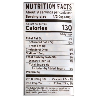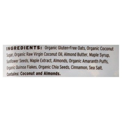 Salty-sweet crunchy clusters. Made with organic quinoa, amaranth and chia. Award-winning taste + nutrient-dense ingredients. 4 g added sugar per 30 g serving. Certified Vegan. vegan.org. NSF: Certified gluten-free. Certified Organic by QAI. Non GMO Project verified. nongmoproject.org. Sweetened with coconut sugar + baked with coconut oil. Created to help you thrive on your wellness journey. - Elizabeth. Eat purely. Live purely. We believe that food can heal. When you eat better, you feel better. It's that simple. That's why we use superfoods with vibrant flavors and rich textures to create foods you will obsess over. But good health is about more than what you eat. It is a holistic approach centered around my Pillars of Living Purely. You are What You Eat: Focus on whole plant-based foods, adding in nutrient-rich ingredients. Limit inflammatory foods. Follow the 80/20 Rule: Life is about balance. 80% of the time be your healthiest self. 20% of the time, indulge - guilt-free. Good Health is More than Diet: Exercise, stress management, healthy relationships and a positive mindset are equally important. Live your Best Life: Live with intention. Innovate, evolve, grow and be grateful. Always made with the highest-quality, nutrient-dense ingredients. Made with organic quinoa, amaranth + chia. Created in 2009 by Elizabeth Stein, Certified holistic nutrition counselor. www.purelyelizabeth.com. Instagram: purely_elizabeth. Facebook; Twitter/purelyelizabeth. Certified B Corporation.