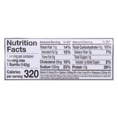 No artificial flavor or no preservatives. 15 g protein. 320 calories. Rolled by hand. After enjoying one of my wife Paige's delicious burrito recipes, Red (our loyal and trusted dog) and I agreed that we had to start a burrito company. Years later we are more obsessed than ever with the craft of burrito making. I hope you enjoy. - Mike. Inspected for wholesomeness by U.S. Department of Agriculture. www.redsallnatural.com. Earn Red's gear 2 points. Learn how at redsallantural.com.