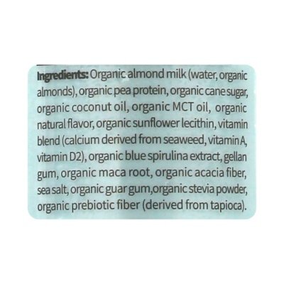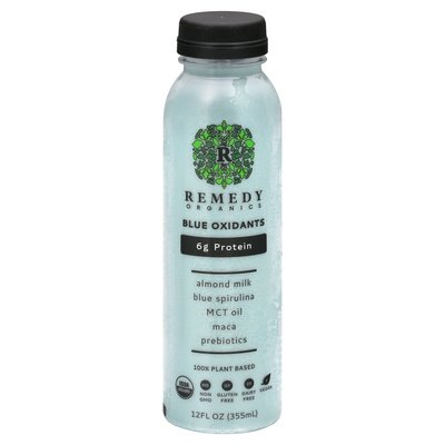 6 g protein. USDA Organic. Gluten free. Dairy free. Vegan. Certified Organic by Oregon Tilth. Non GMO. Almond milk. Blue spirulina. MCT oil. Maca. Prebiotics. 100% plant based. Let food be thy medicine and medicine be thy food. - Hippocrates. Almonds; heart health. Coconut; digestive health. Maca; energy. MCT oil; digestion/energy. Prebiotics; gut health. Protein; muscle recovery. As a holistic nutritionist with a passion for health & wellness, I have always turned to natural remedies for prevention and healing. I believe that good health starts with mindful nutrition. Wholesome food has the power to unleash your body's natural potential to live each day to its fullest. I created these delicious plant-based beverages with functional ingredients for you to enjoy anytime as a healthy meal replacement, satisfying snack, or as a pre/post workout boost to fuel your daily lifestyle! In Good Health, Cindy. Made with love. www.remedyorganics.com. Instagram: (at)remedyorganics. Discover more: www.remedyorganics.com. BPA free.