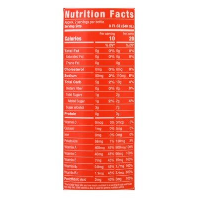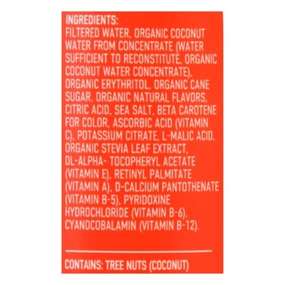 Naturally flavored vitamin enhanced beverage. 2 g sugar per bottle. USDA Organic. Certified Organic by QAI. Gluten free. Vegan. Keto friendly. Electrolytes. Vitamins. Antioxidants. Electrolytes infused hydration. Vitamins 100% daily value per bottle. Antioxidants from vitamins. Organic coconut water from concentrate. An homage to the Founder's daughter. drinkroar.com. More from roar. Contact us: info(at)drinkroar.com. Bottle and cap made from BPA free plastic. Please recycle me!