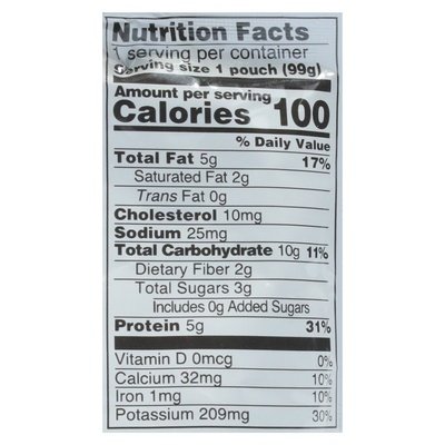 6+ months. 5 grams of protein; 5 g fat. Certified Organic by Oregon Tilth. Serenity Kids because every bite counts. Grass Fed Beef: Our 100% grass fed & finished beef is regeneratively sourced from land to market verified (landtomarket.com) farms with no added hormones or antibiotics. U.S. inspected and passed by Department of Agriculture. www.myserenitykids.com. BPA-free package. Terracycle. Family owned & made in the USA.