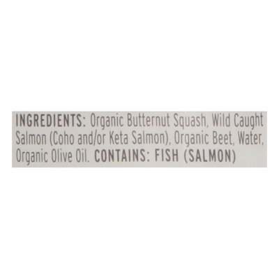 6+ months With organic butternut squash & beet. 5 g protein. 5 g fat. Contains 60 mg Omega-3s per serving. Organic. Certified Organic by Oregon Tilth. Serenity Kids because every bite counts. Wild Caught Salmon: Our salmon is sustainably caught by fishing families in the waters of Alaska. Wild caught salmon contains naturally occurring Omega-3 essential fatty acids. Family owned. Contact(at)myserenitykids.com. Clean Label Project Purity Award: Clean Label Project tests for Over 200 contaminants. To learn more, visit cleanlabelproject.org. BPA-free package. Wild caught. Terracyle. Family owned & made in the USA.