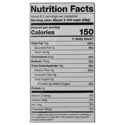 No artificial flavors. 39 calories per cup. Per Serving (3-3/4 cups): 150 calories; 1 g sat fat (5% DV); 75 mg sodium (3% DV); 0 g sugars. Gluten free. Certified vegan. Vegan.org. 100% Whole Grain - 18 g or more per serving. Eat 48 g or more of whole grains daily. wholegrainscouncil.org. Certified gluten free. Dairy free. Peanut free. Tree nut free. Zero trans fat. A good source of fiber and delicious! Non-GMO Project verified. nongmoproject.org. Pure popped perfection. No artificial ingredients. That's all. Nothing more. Nothing less. We believe in snacking without compromise. To us, that means using the fewest, cleanest and simplest ingredients possible to bring you the best tasting popcorn. That's she Skinny! Preservative free. skinnypop.com. vegan.org. nongmoproject.org. wholegrainscouncil.org. Facebook. Twitter. Instagram. Pinterest. Try all the new ways to snack with Skinnypop: Mini Cakes; Puffs; Popcorn; Microwave. Made with 100% SkinnyPop Popcorn and always delicious! Popped skinny in the USA.