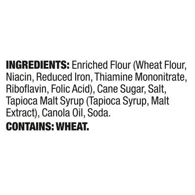 Thin, crunchy pretzel crackers. Non GMO Project verified. nongmoproject.org. Rethink your pretzel! Crunch'em. Crack'em. Dip'em. Stack'em. Snack Factory Pretzel Crisps are a modern twist on an old favorite. They're the best part of the pretzel -thin and flavorful with the crunch you love. Whether you like them plain, dipped, or paired with your favorite toppings, we're sure you'll enjoy this wholesome snack as much as we do. One bite and you'll Rethink Your Pretzel! pretzelcrisps.com. how2recycle.info. Facebook. Twitter. Instagram. Pinterest. PretzelCrisps. Resealable for freshness.