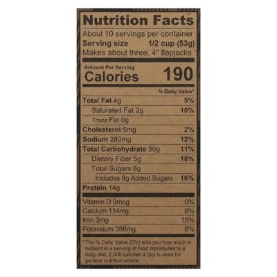 14 g protein per serving. Crafted with 100% whole grains. Protein-packed. Just add water. Whole grains taste better. Restoring the Flapjack Tradition: Way back when, lumberjacks and pioneers relied on food packed with protein and essential nutrients from whole grains to get them through long days on the frontier. Though most of us have traded in our axes for laptops, we still crave delicious, nourishing food. Kodiak Cakes Flapjack and Waffle Mix is meant for those of us who, like the rugged pioneers exploring the untamed wilderness, require nutrition and great taste to successfully navigate today's frontier. kodiakcakes.com. Instagram. Twitter. Facebook. YouTube. Pinterest. Forage for more recipes at kodiakcakes.com. Nourishment for Today's Frontier: Kodiak started out a red wagon. Learn our story and join our adventure at kodiakcakes.com. We can tell you like to get to the bottom of things. Learn more about our story at kodiakcakes.com. Grizzly bear and wildlife foundations. Were committed to keeping the frontier wild for future generations. Your purchase helps us support foundations that protect grizzly bears and other wildlife habitats around the country. Be sure to try Toaster Waffles, Baking Mixes, and Oatmeal. Carton made from recycled paper.