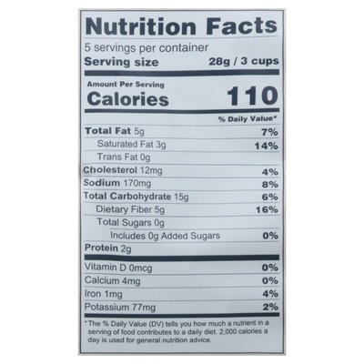 With organic grass-fed clarified butter + himalayan salt. USDA Organic. Certified Gluten Free. gfco.org. Certified Organic by Baystate Organic Certifiers. Good source of fiber. 38% less fat (Typical oil-popped popcorn contains 8 g fat, 3 g fiber, and 140 calories per serving). 67% more fiber (Typical oil-popped popcorn contains 8 g fat, 3 g fiber, and 140 calories per serving). 21% fewer calories (Typical oil-popped popcorn contains 8 g fat, 3 g fiber, and 140 calories per serving). Simple acts. Clean snacks. Premium quality, minimally processed. 100% air popped. Grass fed. Making healthier, less processed, earth-friendly snacking accessible to everyone. We air pop the most tender organic butterfly popcorn, making it noticeably lighter and fluffier than other pre-packaged popcorn. Our popcorn is tumbled in the best fats and sprinkled with Himalayan pink salt - the purest form of salt available. The Mindful Moment Manifesto: We live in a world full of distractions. We can't change that, but we can all find ways to slow down and savor the little moments. It's the small things in life, like sharing smiles, laughter, or even snacks, that make us happiest. At LesserEvil, we believe that just a few simple acts can contribute to something great. By sourcing organic ingredients, using better fats, and practicing sustainability, we're able to make the cleanest (and tastiest) snacks in the world. It's our small way of making the world a little less evil. We are scrappy - Danbury, Connecticut kind of scrappy. We make it happen at our snack factory where we own every ingredient, recipe, and process. It's an East Coast kind of Zen. When wellness guides your spirit, you are your own guru. lesserevil.com. NEOPlastics.com. Connect with the Guru: Facebook. Instagram. Twitter. Chat with the guru! Email: talk2us(at)lesserevil.com. Made with Neo packaging energy. Neo plastics can increase biogas production at municipal landfills, supporting biogas clean energy programs. Visit NEOPlastics.com. Please discard in the trash. Do not recycle.