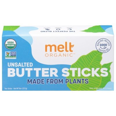 No artificial colors or flavors. USDA Organic. Certified Organic by QAI. Non GMO Project verified. nongmoproject.org. Baking never tasted so good. The Perfect Blend: Coconut; sunflower; palm fruit. Great for baking and cooking. Melt Organic Sticks. Made from the perfect blend of plant-based oils. meltorganic.com. nongmoproject.org. Certified B Corporation. Paperboard packaging recyclable. Fair Trade certified. Palm oil. Rainforest Alliance certified. Product of USA.