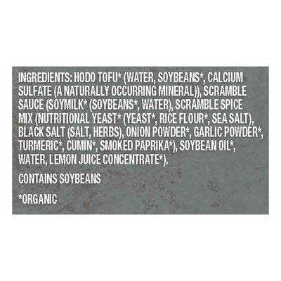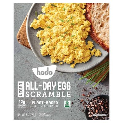 All-dry egg scramble. 12 g protein per serving. CCOF: California Certified Organic Farmers. Vegan. Gluten free. Plant protein. Zero cholesterol. Protein rich. Organic is Non-GMO & more. Plant based. Fully cooked. Obsessed with Delicious: Hodo handcrafts delicious, wholesome, organic plant-based foods for people who love to eat well. We thoughtfully source every ingredient and use artisanal methods. hodofoods.com/recipes. Get inspired at hodofoods.com/recipes. Please recycle. Made with love in Oakland, California.