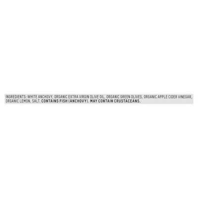 Anchovies in extra-virgin olive oil. Why Anchovies? Unlike the salty, fishy anchovies of pizza fame, our Spanish white anchovies are prized for their mild flavor and delicate texture. They're also an excellent source of protein, calcium, and vitamin B-12. As a small, schooling fish responsibly harvested anchovies also allow us to enjoy seafood with the health and environmental benefits of eating lower on the food chain. More information inside. We're in business to save our home planet. How to enjoy our white anchovies. Delicious straight from the can, on crackers, or as a convenient protein source for pasta or salads. The seasonings are on the bottom, so flip the can onto plate so they flow evenly over the fish. FSC. 1% for the planet. Recycle reuse. Product of Spain.