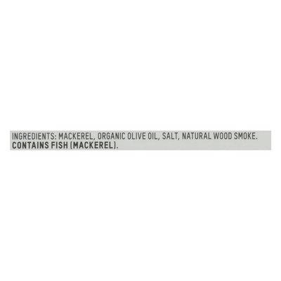 Smoked mackerel in olive oil. How to Enjoy Our Mackerel: Nothing highlights the delicate flavor of Atlantic Mackerel like our simple, savory blend of extra-virgin olive oil, salt and bay wood smoke. Add to pasta and salads, or eat straight from the can with crusty sourdough, using the silky-smooth olive oil as a dipping sauce. Why Mackerel? A mild, meaty smaller fish, Atlantic mackerel are an excellent source of protein and vitamin B-12. Ours swim in immense schools off the coast of Northern Spain, and by choosing to eat these fish, we're taking the pressure off less abundant species like tuna. We're also supporting local fishing families who use traditional hook and line techniques, which means almost no bycatch. More information inside. Certified B Corporation. 1% For the planet. We're in business to save our home planet. Recycle. Reuse. FSC - Mixto. Product of Spain.