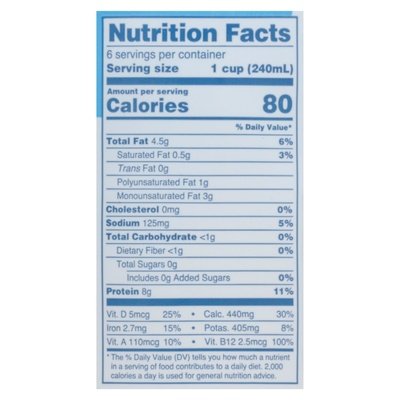 8 g plant-based protein. 0 g sugar (Not a low-calorie food. 1 cup of dairy milk contains 293 mg (20% DV) of calcium vs 1 cup Ripple Unsweetened Original Milk contains 440 mg (30%DV) of calcium. Dairy milk data from USDA National Nutrient Database for Standard Reference, Legacy. April 2018). Dairy free. Zero sugar (Not a low calorie food). Ripple is made with 100% vegan pea protein. Ripple is made without: Soy, nuts, gluten, lactose. 50% more calcium than dairy milk (Not a low-calorie food. 1 cup of dairy milk contains 293 mg (20% DV) of calcium vs 1 cup Ripple Unsweetened Original Milk contains 440 mg (30%DV) of calcium. Dairy milk data from USDA National Nutrient Database for Standard Reference, Legacy. April 2018). Non-GMO Project verified. nongmoproject.org. Drink your pea - your body and the planet will thank you. Never heard of the humble yellow pea? Yep, it's an unsung hero. It is one of the more sustainable, protein-dense plants on Earth. And it takes 6x less water to grow than almonds for almond milk! So thanks for making a small (but awesome) choice that helps create - you guessed it - a Ripple effect. ripplefoods.com. Certified B Corporation. Please recycle.