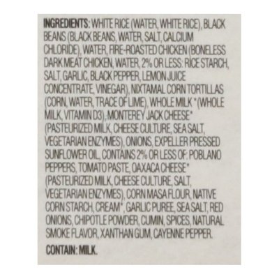 Dark meat chicken, corn, cheese wrapped in tortillas in a creamy chipotle sauce. Certified gluten free. gfco.org. Certified Halal by IFANCA. Ifanca.org. World cuisine. Hot spice. Chicken raised with no antibiotic ever. Journey to better. Savor the flavors from an ancient culinary tradition. Did you know that. Long before the Aztecs named them chilpoctli, chipotle chiles were a delicious staple of the first peoples of Mexico. As were the nutrient filled tortillas rolled with nixtamal corn. So every bite of this iconic Mexican favorite takes you on an authentic journey back in time. You'll love the smokey spicy flavor and tender roasted dark meat chicken, in a hearty dish filled with black beans and rice, fire-roasted corn and Oaxaca cheese. Even after 2,000 years there's nothing more delicious on the Journey to Better. Authentic Mexican recipe. At Saffron Road, we are on a mission to inspire people and to connect cultures through a shared love of and passion for world cuisines. Each of our products is rooted in tradition-we only use fresh, wholesome ingredients and time-honored recipes and traditional cooking methods-delivering delicious dishes and snacks from around the world directly to your plate. Saffron Road. Journey to Better. Chicken raised with no antibiotic ever. Chicken raised with care (Our family farmed chicken are mindfully handled with proper shelter and resting areas promoting healthy behavior and never ever given antibiotics). Inspected for wholesomeness by U.S. Department of Agriculture. www.saffronroad.com. (hashtag)SaffronRoad. Facebook. Threads. Instagram. Pinterest. TikTok. (at)SaffronRoadFood. Please reference information on left flap when contacting us. Certified B Corporation (B Corps are businesses that meet high standards of social and environmental impact. Certified B Corporation by bcorporation.net.).