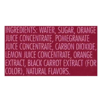 6 cans x 330 ml. Sparkling orange & pomegranate beverage with 9% orange juice from concentrate and 5% pomegranate juice from concentrate with other natural flavors. 120 calories per can. Real fruit juice. Fresh tasting flavor. No artificial sweeteners. sanpellegrinofruitbeverages.com. Follow us on Facebook. Instagram. For questions contact 1-800-255-8334 or sanpellegrinofruitbeverages.com. I am recyclable! Please recycle me! Product of Italy.
