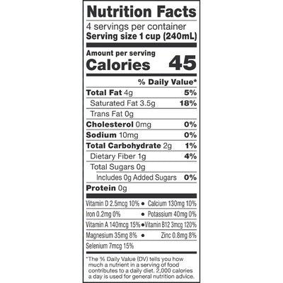 45 calories per serving. USDA Organic. Certified Organic by Organic Certifiers. www.organiccertifiers.com. Certified Vegan. vegan.org. Certified Gluten-Free. Non GMO Project Verified. nongmoproject.org. So Delicious kitchen. Did you know? We use special packaging to seal in the flavor and nutrition of this creamy Coconutmilk. So it's the coconut deliciousness you love, without refrigeration. And because it can be stored in the pantry, you'll always have enough for a matcha smoothie, an indulgent hot chocolate or butternut squash soup. SoDeliciousDairyFree.com. how2recycle.info. To learn more, visit us at SoDeliciousDairyFree.com or call 1-866-388-7853. Certified B Corporation. At So Delicious, we believe in nourishing people and the planet. That’s why we joined the B Corp movement. We’re proud to use our brand as a force for good by paying fair wages to our employees, committing to reduce our environmental impacts and more. Follow our journey at SODeliciousDairyFree.com/Transparency. Tetra Pak: Protects what's good. FSC. Mix - Board. Delight in the silky goodness of coconut with So Delicious Dairy Free Unsweetened Coconutmilk. Filled with creamy flavor and containing 0mg cholesterol per serving, our delectable coconutmilk offers a delicious alternative to dairy. With each cool, refreshing glass, you can taste the coconut’s rich depth of flavor. Not only that, but our sumptuous coconutmilk makes a great addition to your favorite recipes; just substitute it for dairy milk in an easy one-for-one ratio. And for your convenience, our coconutmilk is available in aseptic packaging that keeps it shelf stable unopened. Has a dairy-free lifestyle ever been so easy or tasty?