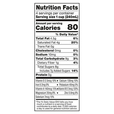 Flavored with other natural flavor. 80 calories per serving. USDA Organic. Certified Organic by Organic Certifiers. www.organiccertifiers.com. Certified vegan. vegan.org. Certified gluten free. gfco.org. See nutritional information for saturated fat content. Non GMO Project verified. nongmoproject.org. So delicious kitchen. Did you know? We use special packaging to seal in the flavor and nutrition of this creamy Coconutmilk. So it's the coconut deliciousness you love, without refrigeration. And because it can be stored in the pantry, you'll always have enough for a matcha smoothie, an indulgent hot chocolate or lemon poppy-seed muffins. We have a rigorous allergen testing program and apply strict quality control measures in an effort to prevent contamination by undeclared food allergens. how2recycle.info. SoDeliciousDairyFree.com. To learn more, visit us at SoDeliciousDairyFree.com or call 1-866-388-7853. Is your mouth watering yet? Find this and other full recipes at sodeliciousdairyfree.com. Certified B Corporation. At So Delicious, we believe in nourishing people and the planet. That's why we joined the B Corp Certified movement. We're proud to use our brand as Certified B Corporation. Force for good by paying fair wages to our employees, committing to reduce our environmental impacts and more. Follow our journey at SoDeliciousDairyFree.com/Transparency. Tetra Pak: Tetra Brik Aseptic. Tetra Pak: Protects what's good. FSC: Mix - Board.