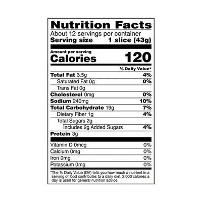 No artificial dyes or flavors. Per 1 Slice: 120 calories; 0 g sat fat (0% DV); 240 mg sodium (10% DV); 2 g total sugars. Certified Gluten-free. Whole Grain: 9 g or more per serving. Eat 48 g or more of whole grains daily. WholeGrainsCouncil.org. No dairy, soy, tree nut or peanut ingredients. New flavor. Delicious. Whole lotta goodness! Don't you just love a whole grain bread that's soft & perfect with all that hearty grain flavor? (we do too) that's why we baked up a delicious whole grain bread that's everything you love and gluten free too. www.udisglutenfree.com. how2recycle.info. SmartLabel: Scan or call 1-800-254-3768 for more food information. Questions or comments, visit us at www.udisglutenfree.com or call 1-800-254-3768. For more information on Udi's gluten free visit us at udisglutenfree.com.