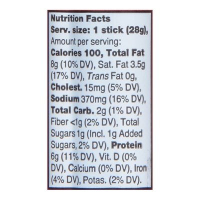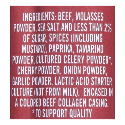 No artificial colors, preservatives (to support quality), or flavors. Gluten Free. Hand crafted slow cooked in small batches. Encased in a colored beef collagen casing. Beef raised with no antibiotics & no added hormones. U.S. inspected and passed by Department of Agriculture. vtsmkcr.com.