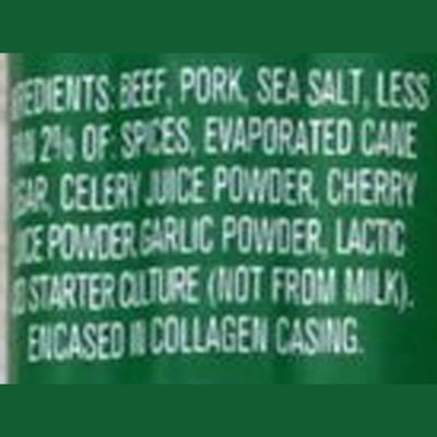 6 g protein. 0 g sugars. Gluten free. Beef & pork raised without antibiotics. No added hormones. Vegetarian fed. US inspected and passed by Department of Agriculture. Made in Vermont with beef & pork purchased from the US.