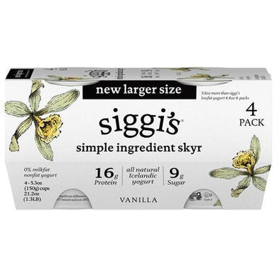 Siggi`S VANILLA SKYR NON FAT YOGURT 4/4/5.3 OZ [UNFI #83892]