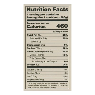 12 g protein Gluten free. Non-GMO Project verified. Plant - powered. Afia began as a little black recipe book in Syria. Our journey from there, to a farmers' market in Austin, TX, and now to stores across the nation, has been driven by our love of traditional Mediterranean cuisine and the strong belief that food is the easiest way to travel. It's what inspired us to infuse the flavors of our first home with modern flavors that appeal to our new one. Afia! is a toast to one's health and well-being and a reminder to brighten your table, and to uplift those around it. That's why we make authentic food that nourishes the body and the community - all at once. Afia: Mediterranean more often. afiafoods.com. Instagram. LinkedIn. Facebook: /afiafoods Female founded. Recycle sleeve. See bottom of container for an upcycling project.