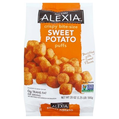 Bursting with sweet flavor. Sweet and savory flavor in each delicious little bite. Big Flavor Comes in Small Packages: That's why we take only the freshest sweet potatoes and use them to create these delectable bites. Each puff is a burst of sweet and savory and crispy and sweet - all in just one bite. Our Story: At acclaimed international restaurants, Chef Alex discovered that by hand-selecting the finest ingredients and producing only small batches, he could create everyday side dishes that achieved a level of quality to match most any gourmet entree. 0 g trans fat per serving. See side panel for nutrition information. Non-GMO. Non GMO Project verified. nongmoproject.org. Try our other Alexia products. Have a question or comment? Visit us at alexiafoods.com or call 1-866-484-8676 (except national holidays). Please have entire package available when you call. Connect with Us: See how our products rate products and write your own review at alexiafoods.com. Facebook: Visit us at Facebook.com/alexiafoods. Product of USA.