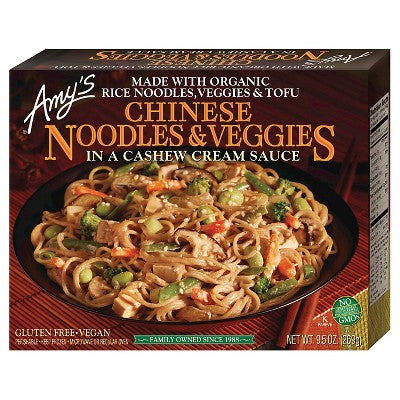 INGREDIENTS: (vegan) rice pasta ( rice flour, rice starch, potato starch, soy flour), tamari (water, soybeans, salt), carrots, green beans, cashews, tofu (filtered water, soybeans, magnesium chloride), broccoli, edamame, green onions, sauteed onions ( onions, sunflower oil), mushrooms, cane sugar, expeller pressed high oleic safflower , sunflower oil, toasted sesame seed oil, brown rice vinegar, shiitake mushrooms, toasted sesame seeds, garlic, black pepper, bell peppers, filtered water, jalapeno