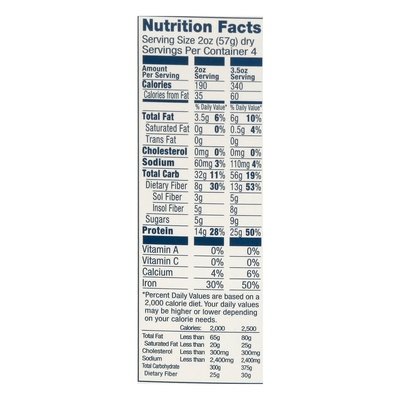 23 g (per 3.5 oz serving) protein; 13 g (per 3.5 oz serving) fiber. Per Serving: Banza: 25 g protein; 13 g fiber; 43 g net carbs (Net carbs = total carbs - dietary fiber) vs Average Pasta: 13 g protein; 3 g fiber; 71 g net carbs (Net carbs = total carbs - dietary fiber). Certified gluten-free. Vegan. GI: Low Glycemic Index. Non GMO Project verified. nongmoproject.org. Powered by chickpeas. Chickpeas make delicious pasta. That’s why we used them to create Banza. We took a household favorite and made it even better, turning the pasta you love into the pasta that loves you back! eatbanza.com. Find us on Facebook, Twitter and Instagram (at)EatBanza. Get inspired by delicious recipes at eatbanza.com. Made at our plant in Riverside, California.