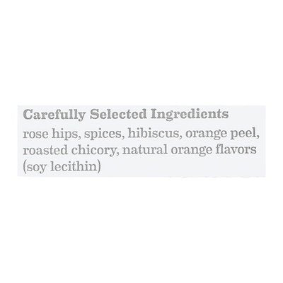 Beautifully balanced blend of zesty citrus and luxurious spices. Gluten-free. Caffeine free. All natural. Caff-O-Meter content per serving: Coffee 100-120 mg; Black tea 30-60 mg; Green tea 25-50 mg; Decaf tea 1-8 mg; Herbal tea 0 mg. Non-GMO America’s classic. Family tea blenders since 1945. Tea bags individually wrapped in foil pouches. Freshness stays in, air and moisture stay out. Bigelow herbal blend. Orange & Spice. We're Proud of Our Recipe: Get into your own comfort zone with our perfect balance of juicy orange and zesty spices. One of our family's favorite blends, we find it soothing and delightful, with a unique taste that is simply impossible to put into words. Because mama moved the pony stable. In 1945. Ruth Bigelow was trying to establish a market for her new product, constant comment tea. This was no easy task. One evening, Ruth was sharing her discouragement when her sister said - Remember. Mama moved the pony stable. As a child, Ruth's family had a pony named bottoms, who lived in a sturdy stable outside of the Bigelow's home. When her father announced one day that the family was moving to the other side of providence, the children lamented that bottoms would never be happy without his stable. Though she knew it would be a great deal of work, finally, Ruth's mother said, The stable will come. The move commenced and they all paraded across providence. It took four rented horses and six hired workmen to move the stable while bottoms trotted behind them. Well-wishers, advice-givers and hecklers followed. On the Bigelow's first night in a strange new house in providence, bottoms had his familiar stable. As Ruth relived these scenes, the significance of her sister's comment was clear: if she wanted to do something badly enough she could. Whenever Ruth was feeling defeated, she would remind herself, Mama moved the pony stable. This always gave her the courage and ingenuity to carry on. The Bigelow family. Unlock the freshness. .Here's the key. We use a special foil pouch to protect your tea from any air, moisture and surrounding aromas. So open and enjoy the unparalleled flavor. Freshness. Aroma of Bigelow tea everywhere you go! Our Promise: We're fully committed to your satisfaction and we love to hear from you! When you do call, please share the code number on this box with the Consumer Service crew. bigelowtea.com. We love recycle. Our boxes, tea bags, strings and tags are 100% biodegradable and we encourage you to do your part. Thanks! Blended and packaged in the USA.