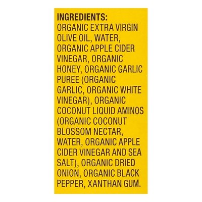 Dressing & marinade with apple cider vinegar. USDA Organic. Certified Organic by Organic Certifiers. Gluten-free. Non GMO Project verified. nongmoproject.org. Est. 1912. Made with 100% extra virgin olive oil. Made with Bragg appel cider vinegar. Bragg Organic Vinaigrette Dressing is a delicious and zesty blend of Bragg organic apple cider vinegar, organic extra virgin olive oil, Bragg organic coconut liquid aminos, organic honey and organic garlic. www.bragg.com. Protect our planet.