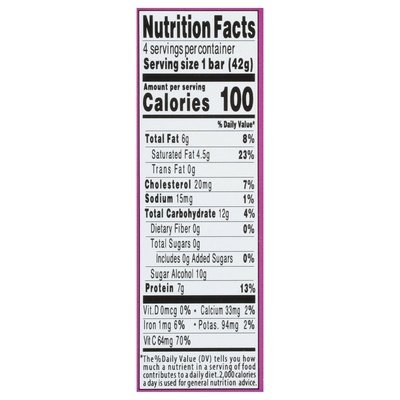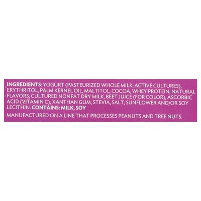 Natural flavor. 100 calories (See nutrition facts panel for sat. fat content). 0 sugar (See nutrition facts panel for sat. fat content)(Not a low calorie food). 7 g protein (See nutrition facts panel for sat. fat content). Gluten free. Zero sugar (See nutrition facts panel for sat. fat content) (Not a low calorie food). Keto-friendly. We made Clio with zero sugar (See nutrition facts panel for sat. fat content) (Not a low calorie food), but kept it 100 (See nutrition facts panel for sat. fat content). Strained Greek yogurt. Cheesecake texture. Chocolatey. Clio bars. Love what you crave. We're the type of people who eat yogurt with our hands. No rBST (According to the FDA, no significant difference has been found between milk derived from rBST-treated and non-rBST-treated cows). www.cliosnacks.com. Take a bite out of our feed: (at)cliosnacks. Instagram. TikTok. Facebook. Recycle me.