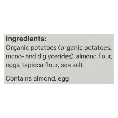 Almond flour pasta. 11 g protein per serving. Certified Gluten-Free. Paleo. Dairy free. Soy free. Grain free. Non-GMO. Non GMO Project verified. nongmoproject.org. We didn't have to split the atom to reinvent paste. We had to split the almond. At Cappello's, we're here to set a new standard for your favorite foods with a little help from almonds. We harnessed the proteins, fiber and healthy fats in almond flour to create pasta unlike any other - a delicious, grain-free work of edible art. You could display it in a bowl on your coffee table, but we're guessing you'd rather eat it. The best pasta is frozen fresh, and for us that not only means convenience, but also locking in the amazing flavors of our meticulously sourced ingredients like savory cage-free eggs, organic potatoes and tapioca flour. Adding things like modified starches, wheat, corn, rice, legumes or soy would be like spray painting a moustache on the Mona Lisa. We could do it, but we'd definitely regret it. From simple ingredients comes delicious food we're proud to share with the world. It's our mission, our passion and our obsession. We're so excited to eat with you! You know, metaphorically. Cage-free eggs are produced from hens that are non-caged and free to roam in open buildings. Keep the homemade flavors coming. Look for our almond flour pizza and cookie dough the next time you shop. Cappellos.com. Follow Us: (at)cappellos. Find Recipes here: Cappellos.com. Recycle me!