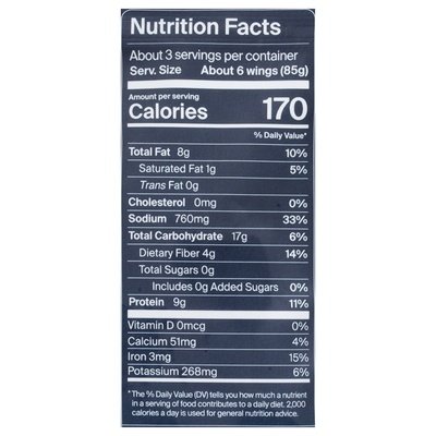 See nutrition information for sodium content. Non-GMO Project verified. nongmoproject.org. Buffalo plant chicken wings for people who love chicken chicken. Daring Buffalo Plant Chicken Wings are spicy, tangy, and remarkably chicken-y. Generously coated in a bold and delicious buffalo sauce, these crispy wings are perfect for game time. Fellow chicken lovers, You're holding the right bag. Because Daring is for all of us who want to eat more plants but aren't ready to give up one of our favorite foods. Our mission is to put such incredibly delicious plant chicken on your table that one day we might just remove chicken from the food system entirely We're Daring, and we think you are too.