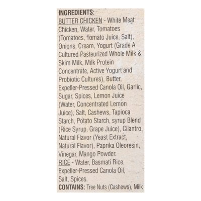 23 g protein per serving. Gluten free. ISNA-Halal Certification agency. Certified Halal. isnacanada.com. Always made from scratch. Chicken. Rich, creamy sauce. Cumin basmati rice. No artificial ingredients. No antibiotics ever. Spice: medium. Welcome to Deep: And welcome to our Indian family's kitchen. We've heard the debate: chicken tikka masala vs. butter chicken. Sorry not sorry we like both. We start our butter chicken by grinding our own spices, cooking vegetables in batches, and simmering in creamy sauce with, you guessed it, butter. Finally we marinate juicy pieces of chicken, roast them, and mix it all together. This dish features: tomatoes, butter, turmeric, ginger, onion & cumin. Inspected for wholesomeness by U.S. Department of Agriculture. isnacanada.com. deepindiankitchen.com. Dive Deeper: (at)deepindiankitchen. To our family, the name deep is, well, deep. In India it means lamp and enlightenment, and our mission is to share the best of India's culture with everyone. That's why we care so much about our food and every purchase benefits our Deepkiran (Ray of Light) Foundation, which helps children in rural India access education. Children we support each year 22,000+. Product of the USA.