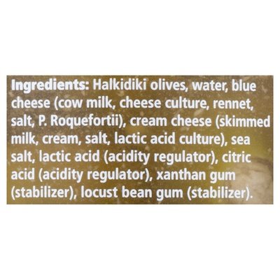 Tangy & creamy. Hand-stuffed with tangy blue cheese, serve these classic Greek olives with fresh pears and walnuts or as a unique side to buffalo wings. www.foodmatch.com. Product of Greece.
