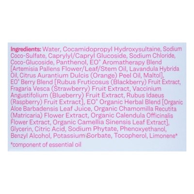 Vegan. Vegan + cruelty-free. For every body. Made with plants. Pure essential oils. Body wash, bubble bath, shampoo. Gentle + hypoallergenic. Real good stuff inside! We say Nope to fake fragrances, dyes and fillers. And Yep to quality ingredients and plant extracts that are vegan and cruelty free. Why? Because we believe in making good products that everyone can enjoy. For us, that's botanical body care that's better for you and for the planet. Smells like real berries! Nope! No parabens, dyes, phthalates. No synthetic fragrance. No sketchy fillers. No harsh chemicals. No worries! Yep! Hypoallergenic + dermatologist tested. Plant extract + pure essential oils. Family owned. Made with love! Clean up with our safe and effective, made-for-kids formula. Everyone is welcome. EWG Verified: For you health. ewg.org. eoproducts.com. Follow us: Instagram. everyoneproducts. 100% PCR. No animal testing. 100% recycled bottle. Please recycle. Made in the USA from domestic and globally sourced components.