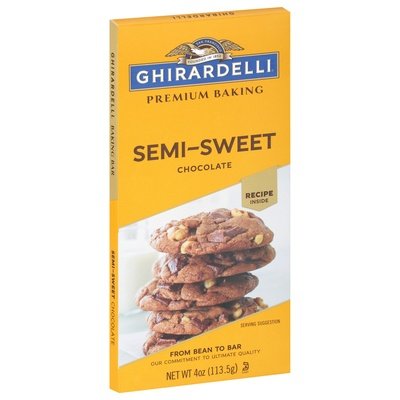 San Francisco. Founded in 1852. Recipe inside. From bean to bar. Our commitment to ultimate quality. Each 4 oz. bar contains 8 sections (1/2 oz. each) 2 sections = 1 oz. Ghirardelli of San Francisco since 1852. The Ghirardelli difference from bean to bar. Select high quality beans. Roast nibs for intensity. Refine for smoothness. Conche for flavor. Our commitment to ultimate quality. www.ghirardelli.com. Please recycle. Cocoa Farming Program: For more information about our ingredients and sustainable sourcing visit ghirardelli.com/sustainability.