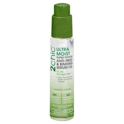 Avocado + Olive oil. For dry, damaged hair. Helps rebond hair and prevent split ends and breakage. Yes: Vegan; Cruelty-free; Infused with natural botanical ingredients; Recyclable packaging. No: Harmful sulfates; PEGs, Parabens, Mineral oil; Propylene glycol; Phthalates; Artificial dyes. 100% vegetarian ingredients/No animal testing. Color safe. Salon-quality. Family owned and operated, since 1979. Eco chic hair care. 2chic is to Polish, Style and Protect: Eliminates frizz; Helps prevent breakage; Adds shine; Smooth flyaways; Defends against heat styling; Helps protect from humidity; Use to straighten hair or enhance curls. 2chic or not 2chic? 2chic is to polish. Help rebond damaged hair with this delectable botanical blend of Avocado and golden Olive Oil, formulated in our exclusive Dual Moisture Complex-to replenish hair that's dull, lifeless and brittle. Coat strands and fill in imperfections by smoothing tresses, adding texture and helping protect from heat damage and humidity. Use as a treatment and/or styling tool. Ideal for hair that's heat-styled often, and 2chic to be denied. 100% vegetarian ingredients/No animal testing. We do not add parabens, lauryl or laureth sulfate, dyes or PEGs to this product. Beauty from the elements is chic on the street. giovannicosmetics.com. Please recycle. Made in USA from globally sourced materials.