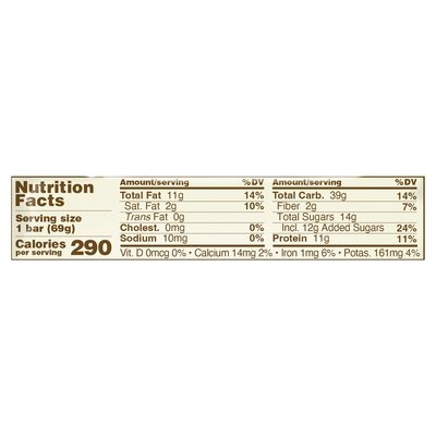 11 g protein. Vegan. Gluten free. USDA Organic. Certified Organic by QAI. Certified vegan. Vegan.org. Certified gluten free. gfco.org. Non-GMO Project verified. nongmoproject.org. Protein pleasure. Live long. Eat positive. Give back. Tread lightly. Be well. Mother-Daughter owned and based in a small rural community, our mission is to spread awareness for a balanced, plant-based lifestyle with products that make a positive impact on the planet. This MacroBar is made with high-quality, sustainably sourced, plant-based ingredients using 100% renewable energy to help you have a healthy body, sharp mind, and bold spirit. Join us as we make the world better, one bite at a time. Certified C.L.E.A.N. Approved Food Product. FODMAP Friendly. GoMacro.com. 1-833-GoMacro (1-833-466-2276); GoMacro.com. Terracycle. GoMacro.com/recycle.