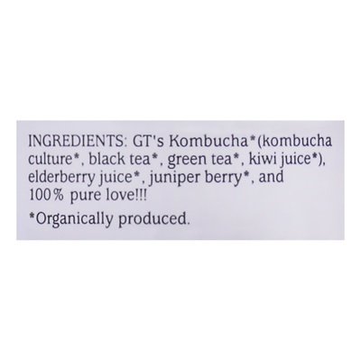 USDA Organic. Certified Organic by Organic Certifiers, Inc. Gluten-free. Vegan. Aminos + polyphenols. Enzymes + probiotics. 9 billion living probiotics (Per bottle at time of bottling: Probiotics Bacillus Coagulans GBI-306086: 1 billion organisms, S. Boulardii: 4 billion organisms, Lactobacillus Bacterium: 4 billion organisms, L(+) Lactic Acid: 100 mg, Acetic Acid: 75 mg, Glucoronic Acid: 1400 mg, Gluconic Acid: 650 mg). Non-GMO Project verified. nongmoproject.org. Non-GMO. Renew. Rebalance. Rebuild. Reclaim. Rekindle. Recharge. Living food for the living body. Begin Within: Begin with a sip of liquid life and a bold bite that's undeniably electric. Begin with a drink that is living - bubbling with nutrients and billions of probiotics. Begin with energy that nourishes your body's vitality, making you feel more alive. Begin with a taste that transforms you from within. -GT Dave, Founder. Raw is real. When heated, filtered, or from concentrate, Kombucha's innate nutritional integrity is forever compromised. See the proof for yourself at the bottom of every one of our bottles. Words of Enlightenment: 'Do not wait for inspiration. Being an inspiration is one step away' - Johnny Lopez, Marketing, Huntington Beach, CA. gtslivingfoods.com. Scan the QR code to learn more. We invite you to enlighten us with your words at gtslivingfoods.com. Contact Us: Toll-Free: 877-735-8423, info(at)gtslivingfoods.com, gtslivingfoods.com. Please recycle.