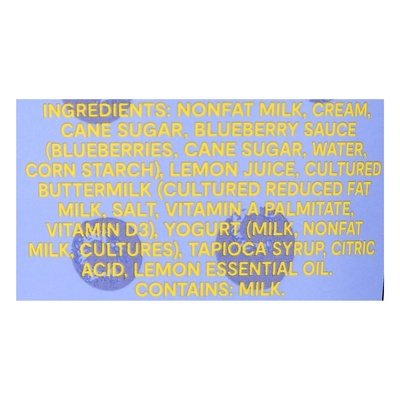 Tart and uber creamy lemon with from-scratch blueberry jam in fresh cultured buttermilk and cream. Gluten-free. Hands down, this is one of my all-time favorite flavors. I've been making it since my first days selling ice cream at a farmers market in 1996, inspired by the fresh berries grown by neighborhood farms. We make it the same way we always have, with fresh cultured buttermilk for tartness, lemon juice for a bright bite, and from-scratch blueberry sauce for sweet-tart balance. Reminiscent of the best sherbet you've ever tasted. - Jeni. Grass-grazed milk. jenis.com. Certified B Corporation.